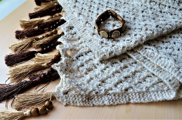If you know how to crochet, you can make a crocheted row joining the tassels and beads on both ends of the scarf, as shown below. You can absolutely skip this step and the scarf will look beautiful even without this edition.